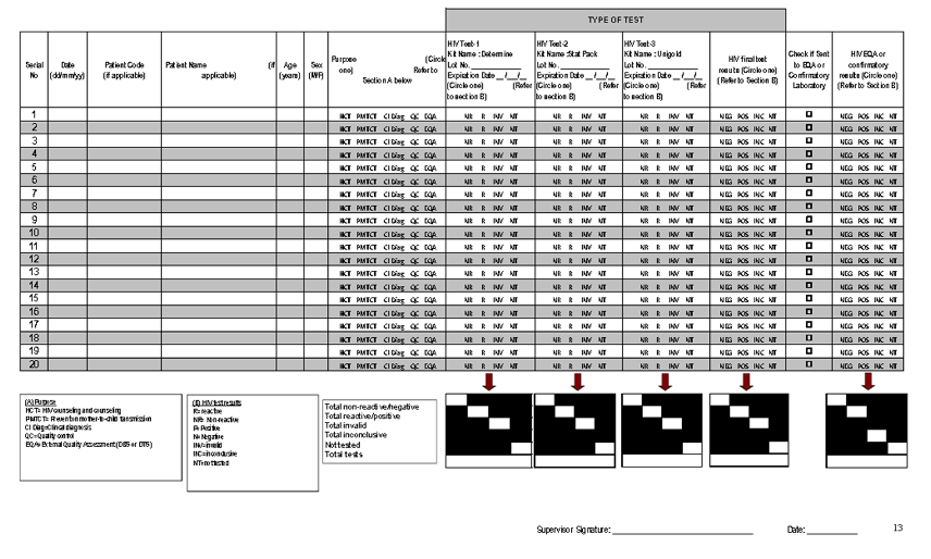 Current record keeping practices at most HIV testing sites include the use of standardized HIV testing registers that capture program related information which are not necessarily adequate for quality assurance purposes. Most registers do not include key testing quality indicators (i.e. test kit name, lot number and expiration date etc.) making it challenging to monitor the quality of testing or troubleshoot errors if needed. Most often, only a final HIV test result is entered without indicating individual test results. To address this gap, a standardized HTS test register was developed that incorporates all key testing quality information.