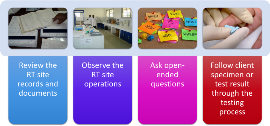 Working through the SPI-RRT Checklist will enable the individuals in charge of the HIV RRT/RTRI testing points and facilities to recognize quality gaps and shortcomings, identify areas for improvement and where additional resources may be needed to achieve national certification. Using the SPI-RRT checklist, the HIV rapid and recency testing site audits are intended to be effective means to: