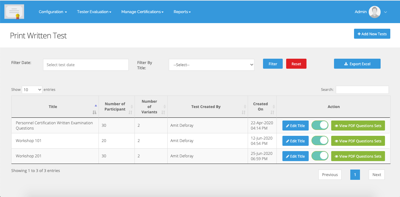 HIV-RT Lab Tester Certifications Tool